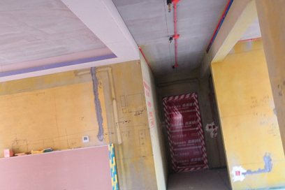 水電進行啦。冷熱水管包管,避免潮濕,強弱電線進行距離隔離,保證無電交叉,專業的施工就在這里