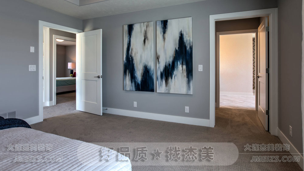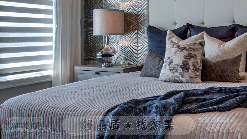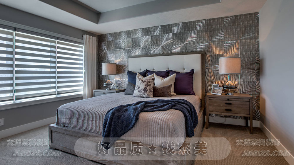 臥室的主體色調以淡雅的灰色和白色為主,這種顏色組合既顯得高雅又不失溫馨。淡灰色給人一種寧靜的感覺,而白色則增添了一絲純凈與奢華,使整個空間顯得既簡約又不失高貴。