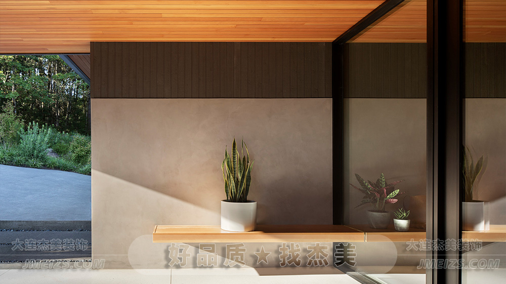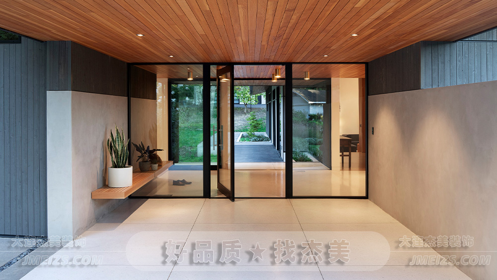 此外,門廊的設(shè)計(jì)中還巧妙地使用了懸浮木質(zhì)長(zhǎng)凳,