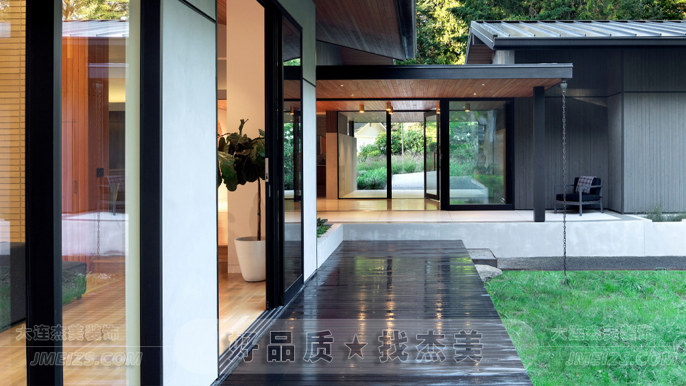 大面積的玻璃門不僅增加了室內(nèi)外的透明度,